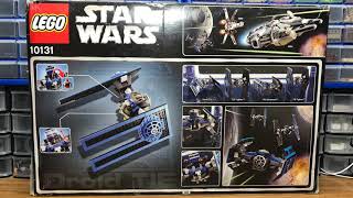 Richard Martin from The Learning Tree showcases the 2004 LEGO Star Wars 10131 TIE Fighter Collection, noting the inclusion of Darth Vader and a Droid Brain among the four minifigures. The review emphasizes the set's unique inclusion of the TIE/D ship, marking LEGO's initial foray into Expanded Universe content.