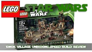 EvanTubeHD's review emphasizes the 'huge' box, 17 minifigures, and play features like rotating tree trunks and spider web traps. Brick Building Kids highlights the set's numerous play features, Ewok minifigures, and functions such as the tree-trunk hideout and catapults.