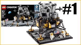 Missing Pieces unboxes the LEGO NASA Apollo 11 Lunar Lander (10266), expressing excitement for the build on the 50th anniversary of the moon landing. The reviewer appreciates the design and display potential, noting the beautiful gold elements and lunar surface details.