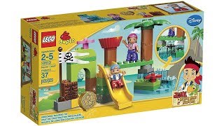 Kid Friendly TV showcases the LEGO Duplo Never Land Hideout's slide, pirate flag, and gold doubloon, emphasizing its suitability for young children. Amazon Smile highlights the set's easy-to-build design with features like a rotating lookout tower, noting its playability and educational aspects for toddlers.