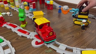 Tutoriale La Orga's video features an unboxing and assembly of the Lego Duplo 10875 Cargo Train, showing the various components. The video highlights the assembly of the freight train, crane, cafe, and railway track.