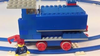 BrickTsar reviews the vintage LEGO Train 112 Locomotive from 1966, noting it as one of LEGO's first motorized trains. He finds the locomotive surprisingly strong, capable of pulling multiple cars, and mentions the inclusion of a battery box and forward/reverse switch.
