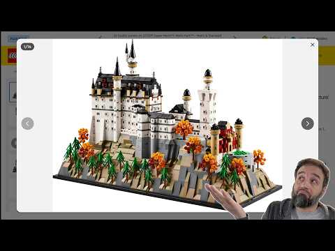 The LEGO Architecture Neuschwanstein Castle (21063) receives mixed reactions, with RacingBrick highlighting its 3455 pieces and 237 printed parts but questioning its price. Many videos focus on the set's reveal and features without strong opinions, resulting in a neutral overall sentiment.