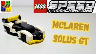 Adam's Brick Channel provides a positive review of the LEGO Speed Champions McLaren Solus GT (30657) polybag, praising its design and affordability for its size. The reviewer highlights the dual exhaust and side fins as particularly nice details, making it a cool-looking concept car overall.