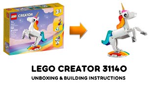 Lenarex Lego alt build provides unboxing and speed build videos for both the main model, the Magical Unicorn, and alternative builds like the Sea Horse and Peacock from LEGO Creator 3in1 set 31140. The videos focus on showcasing the building process using the paper instructions provided.