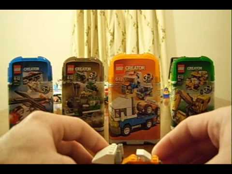 ToysForJunior's review highlights the Mini Flyer set, noting its availability as a LEGO Creator set. Make2's review specifically focuses on the 4918 set, mentioning its 78 pieces and the ability to build three different vehicles, offering a look back at this 2007 release.