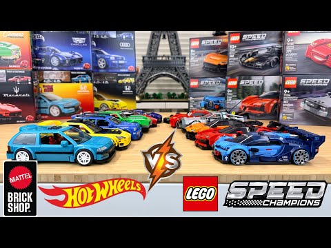 Top reviewers such as RacingBrick and TheGreenBrick directly compare Mattel Brick Shop's Hot Wheels to LEGO Speed Champions, analyzing the quality and value of each. Unbrickme highlights rare LEGO wheels and tires, appealing to collectors.