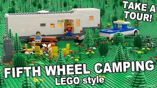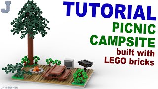 JAYSTEPHER offers quick speed builds of LEGO camping scenes, including a 5th wheel travel trailer and a picnic campsite. Both videos showcase basic builds using LEGO bricks, focusing on elements like picnic tables, barbecues, and campfires.