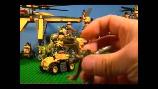 Brickformula's review of the 5882 Ambush Attack set focuses on the rubber dinosaur, noting its lack of articulation. The reviewer also points out the mini off-roader's inclusion of flick fire missiles and the simplicity of the jungle foliage build.