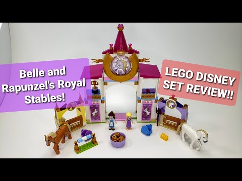 AliyahViolet unboxes a Schleich Horse Club stable playset, while Discupcake showcases LEGO Disney Princess sets like the Frozen Ice Castle and Belle and Beast's Castle. L of Elle reviews the LEGO Disney set Belle and Rapunzel's Royal Stables, highlighting it as a simple and interesting set.