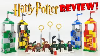 JediJACPenguin's reviews focus on LEGO Harry Potter Quidditch sets, praising the inclusion of all Hogwarts houses and play features like shooting the quaffle and bludgers. The older set 4737 is highlighted for its minifigures, including Oliver Wood and Marcus Flint, and the overall value it offered at the time of release.